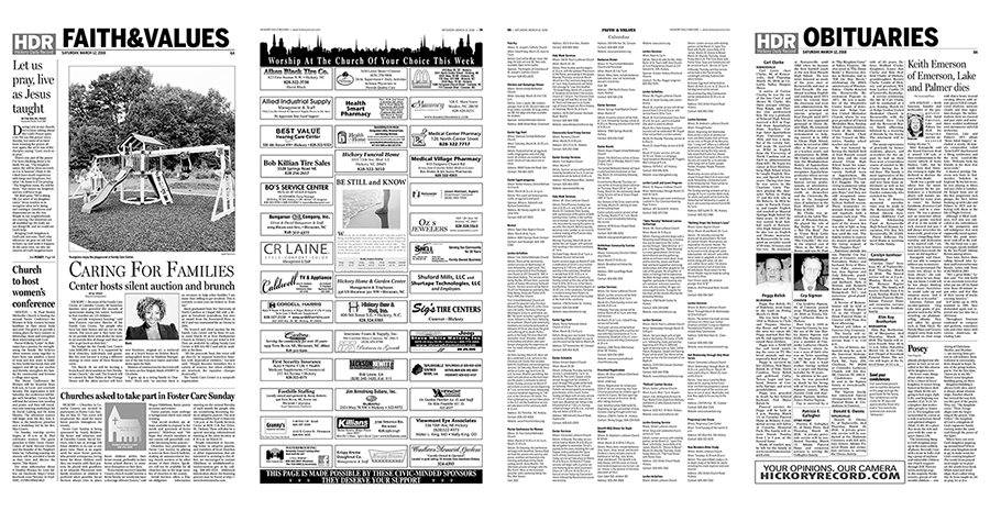 From full-color spreads like The Shelby Star to black & white features like the Hickory Daily Record, KW News can help create the section that best suits your needs.